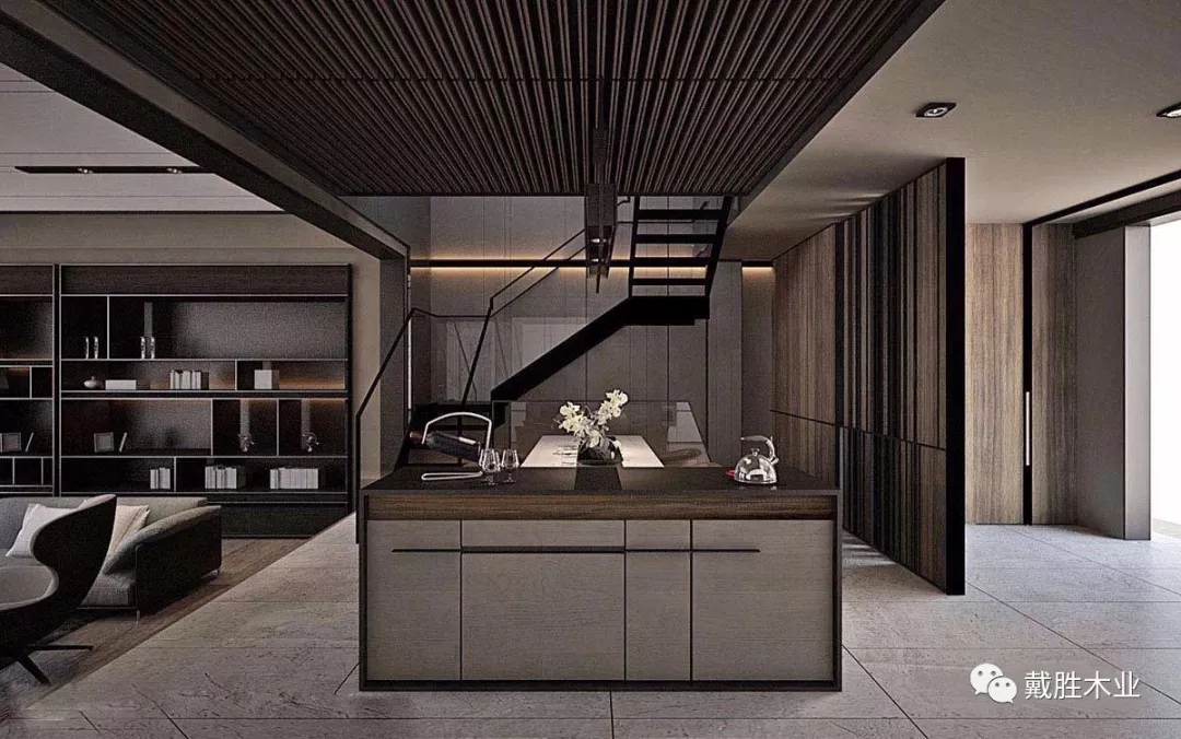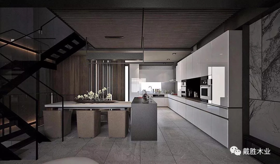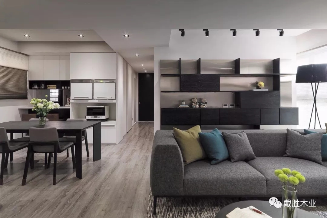 設(shè)計(jì)師將它與日常就餐區(qū),有效的結(jié)合在一起,整體流暢有序、也潔凈。